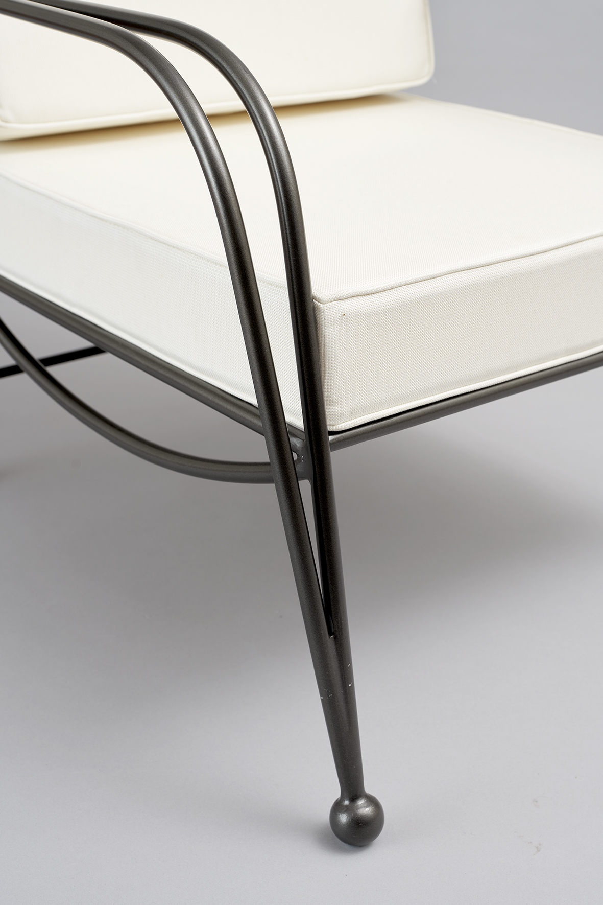 Poltrona in acciaio inox AISI 304 con braccioli, verniciato a polvere, cuscinerie in tessuto outdoor stoffa Sunbrella Nattè Nature (NAT 10014 140), verniciato a polvere.