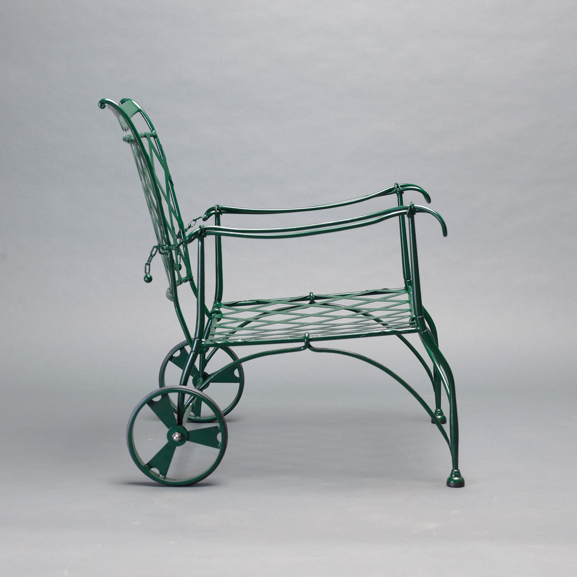 Poltrona in acciaio inox AISI 304 con ruote, cuscinerie in tessuto Sunbrella Nattè Col.Nature incluse, verniciato a polvere.