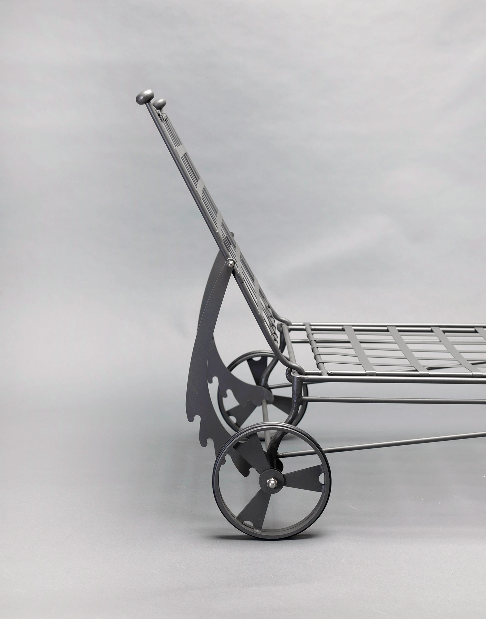Lettino in acciaio inox AISI 304 con intreccio, cuscinerie in tessuto Sunbrella Nattè Col.Nature incluse, verniciato a polvere.