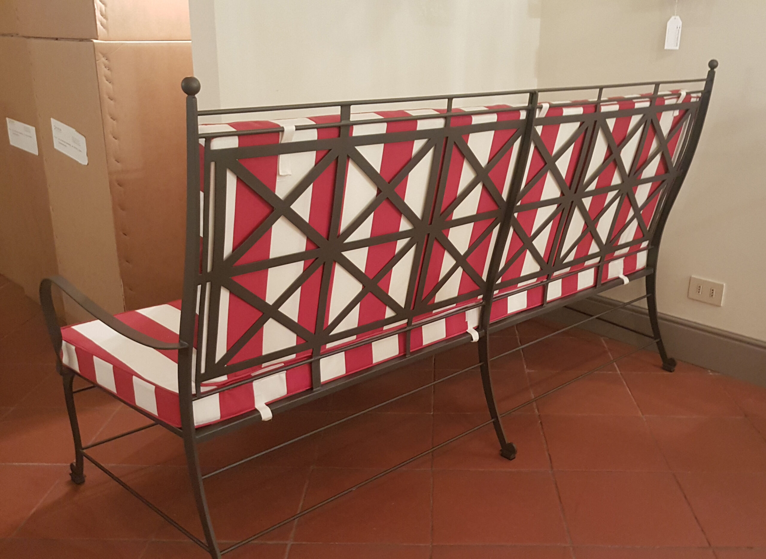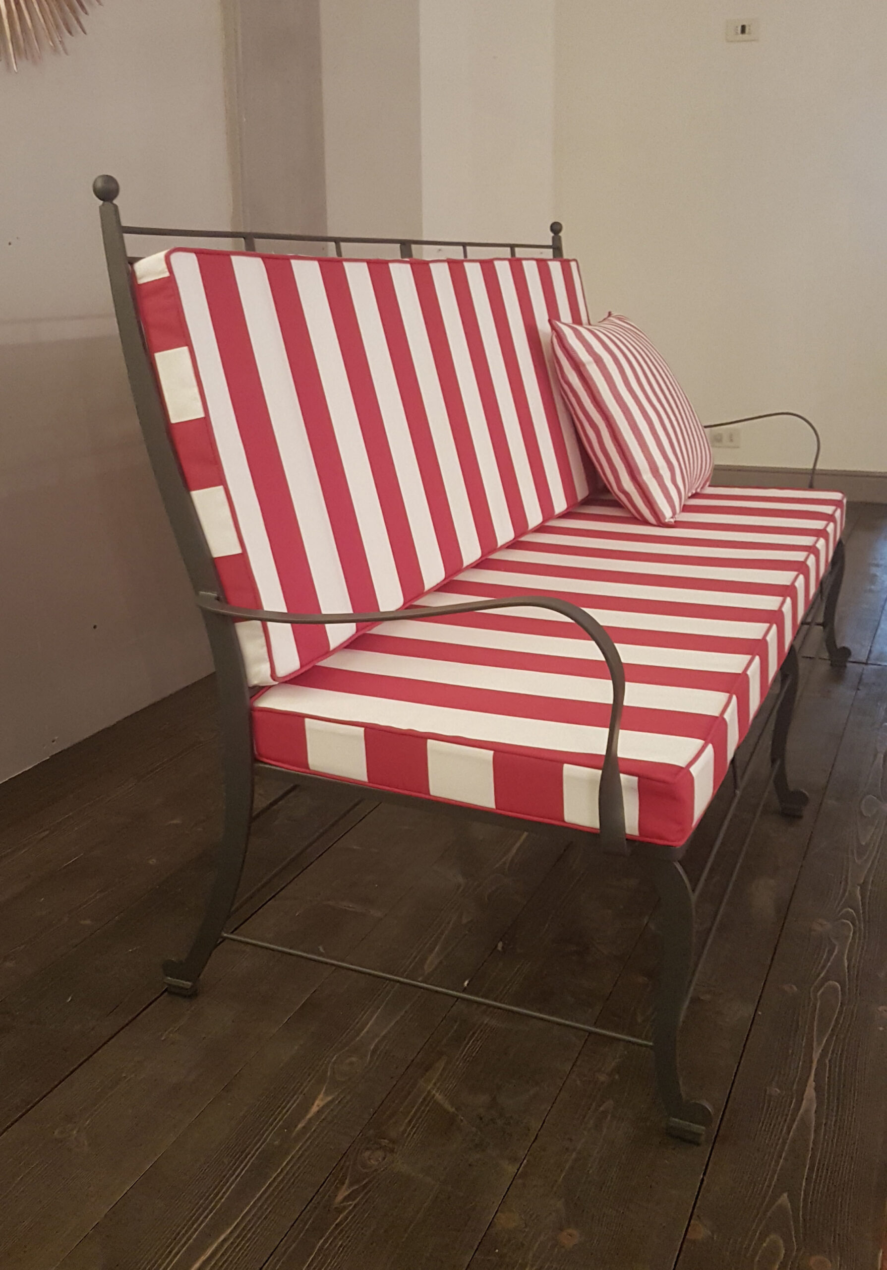 Divano in acciaio inox AISI 304 3posti, verniciato a polvere, cuscinerie in tessuto Sunbrella Natté Col.Natural (bianco).