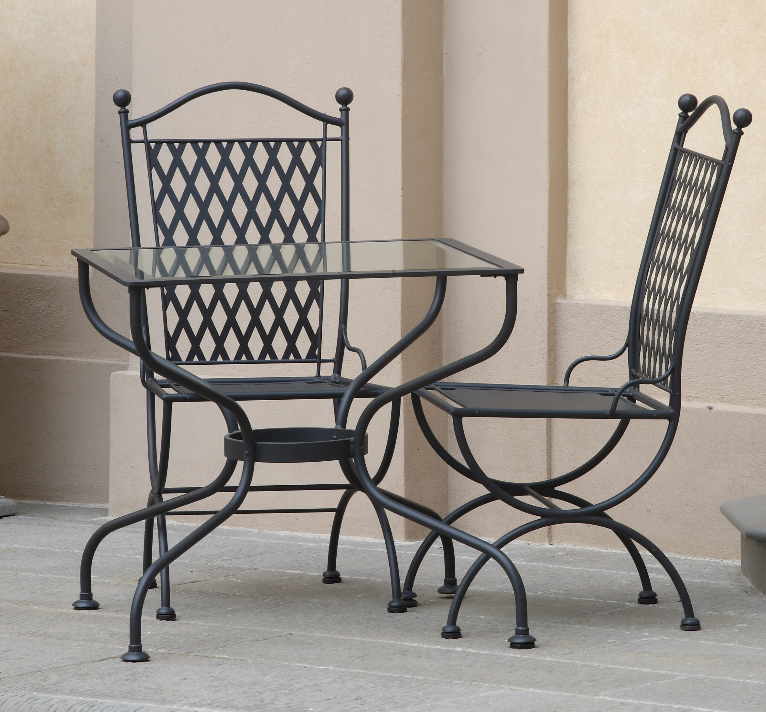 Tavolo pranzo in ferro con piano in cristallo ad incasso