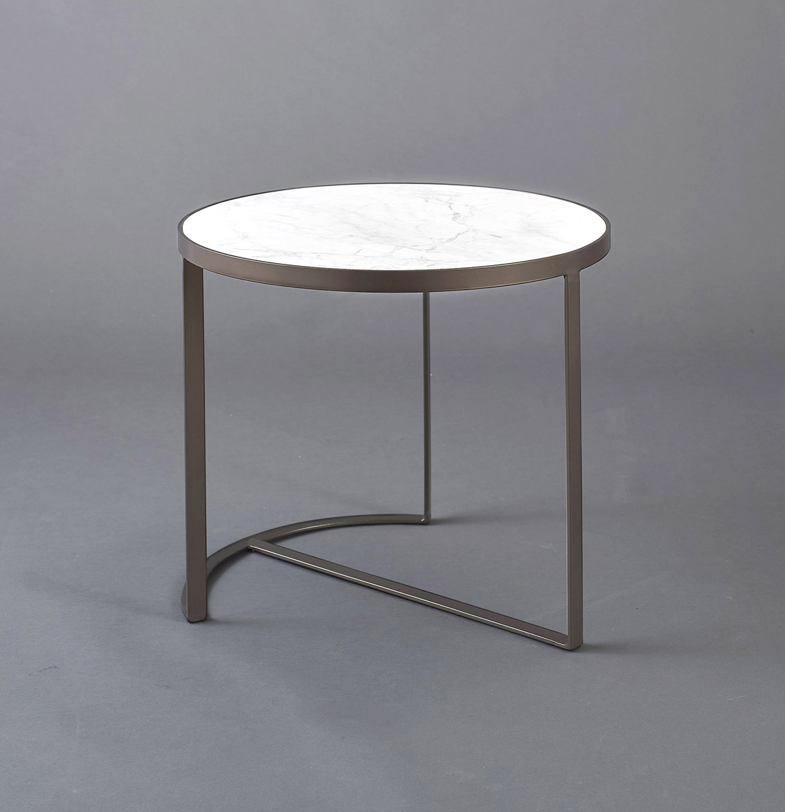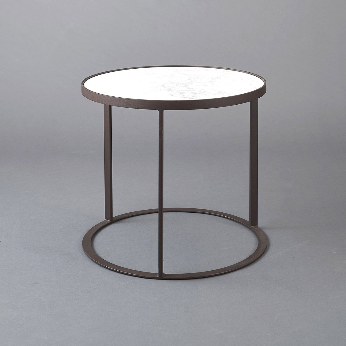 Tavolino tondo in acciaio inox AISI 304 con top ad incasso in marmo Carrara, verniciato a polvere.