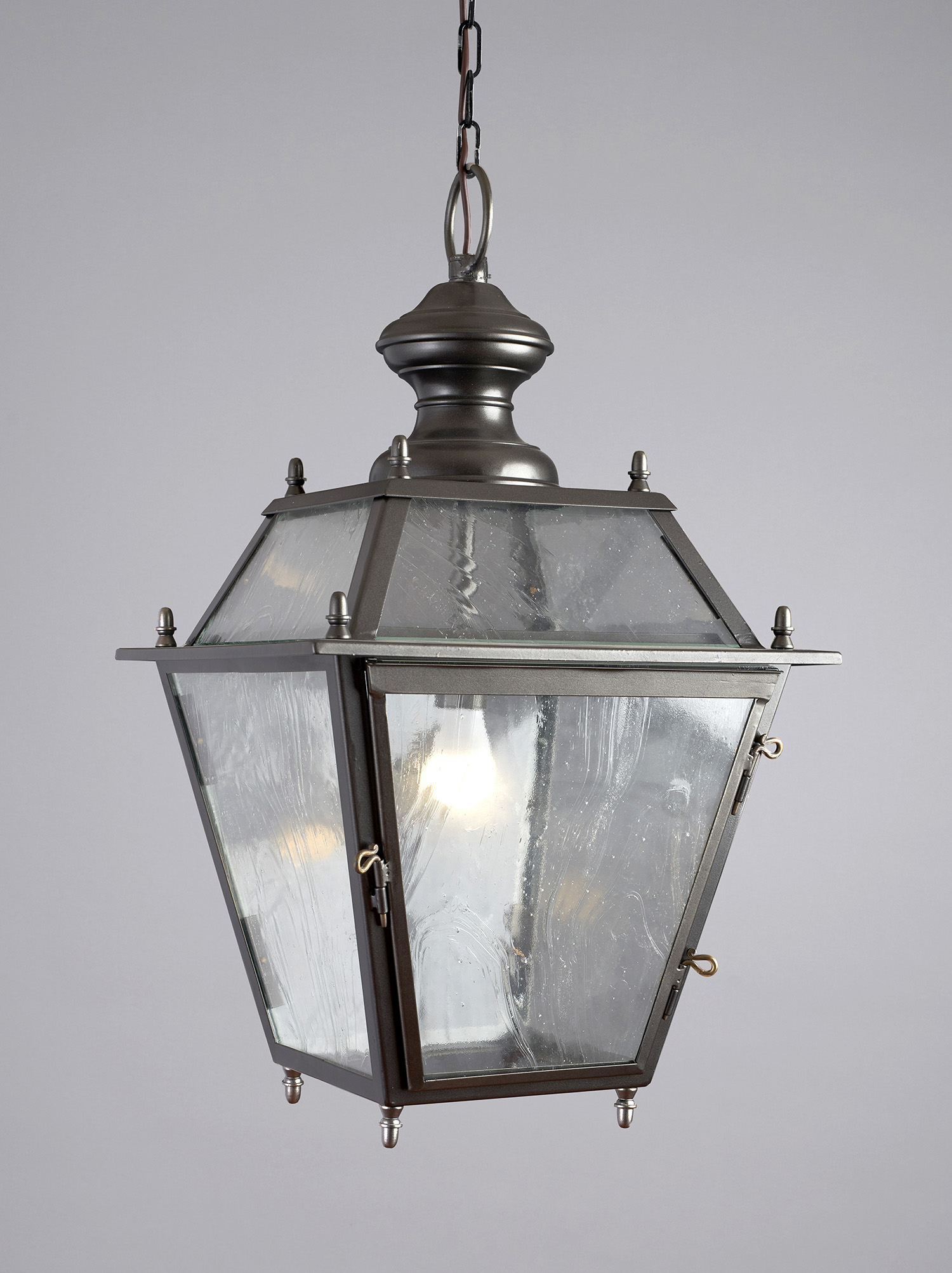Lanterna a catena in ferro forgiato con fiamma , zincato e verniciato a polvere