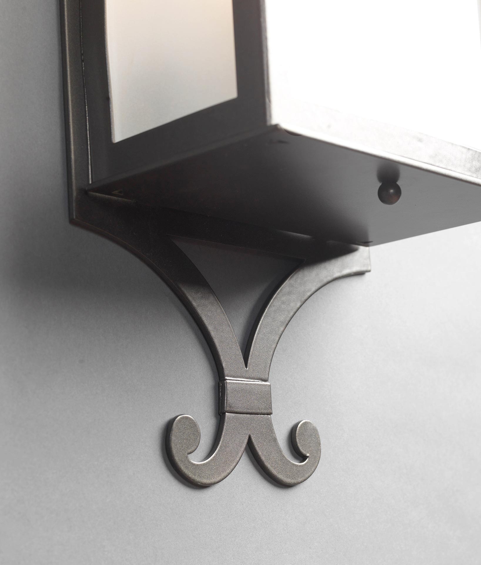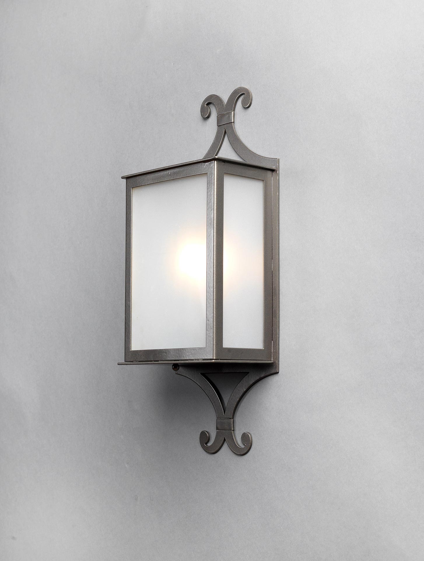 Mezza lanterna in ferro con retro chiuso con decori. zincato e verniciato a polvere
