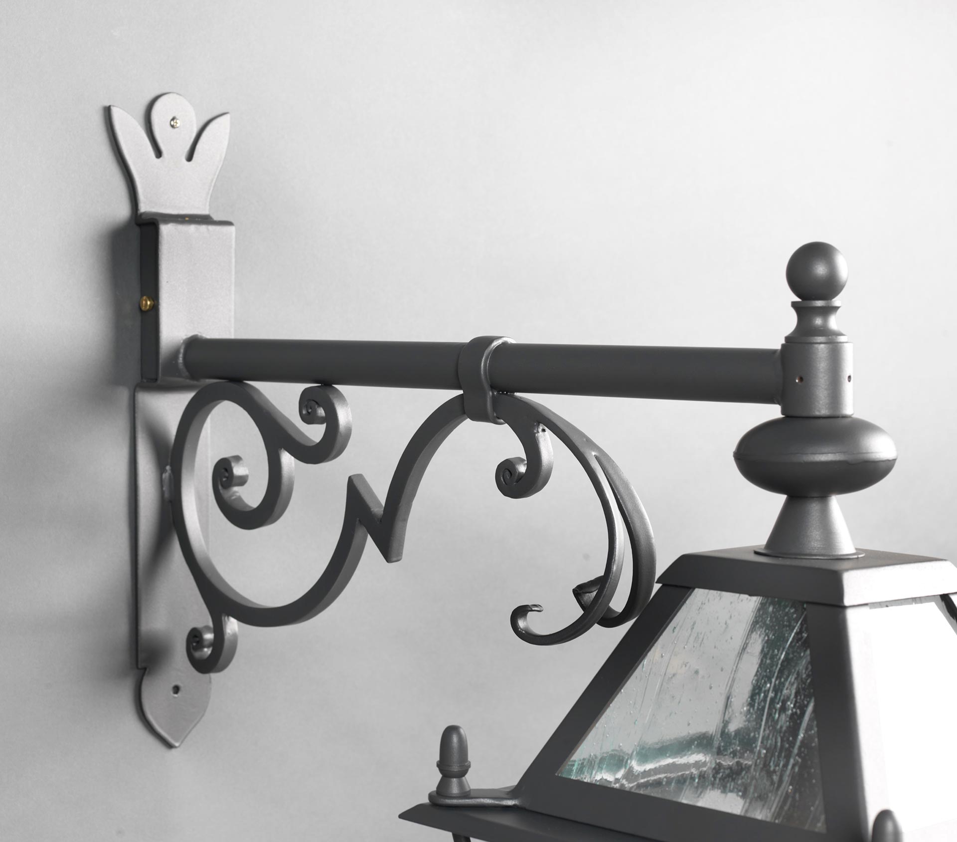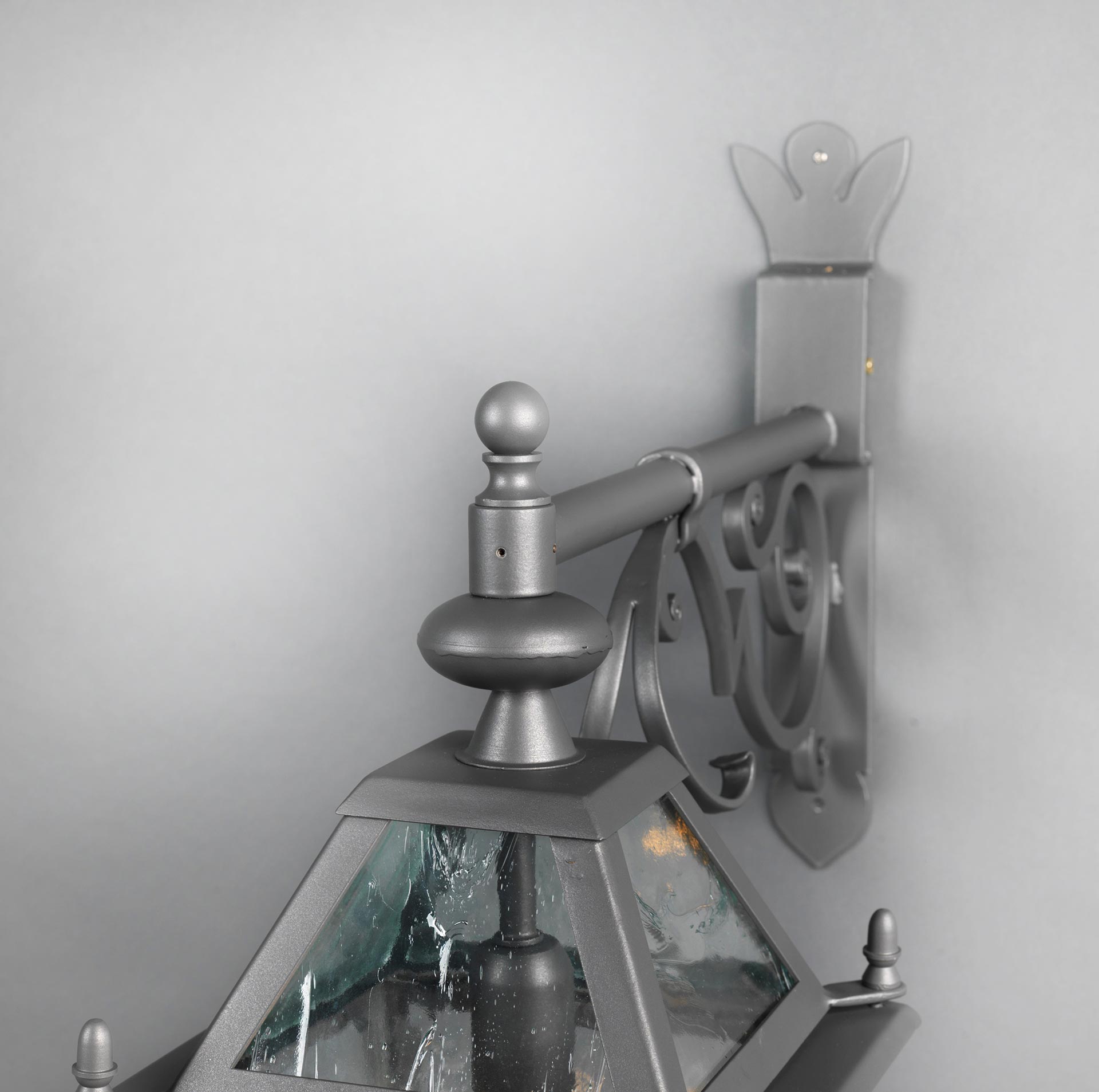 Lanterna a muro inferro con braccio in basso con vetri, zincato e verniciato a polvere