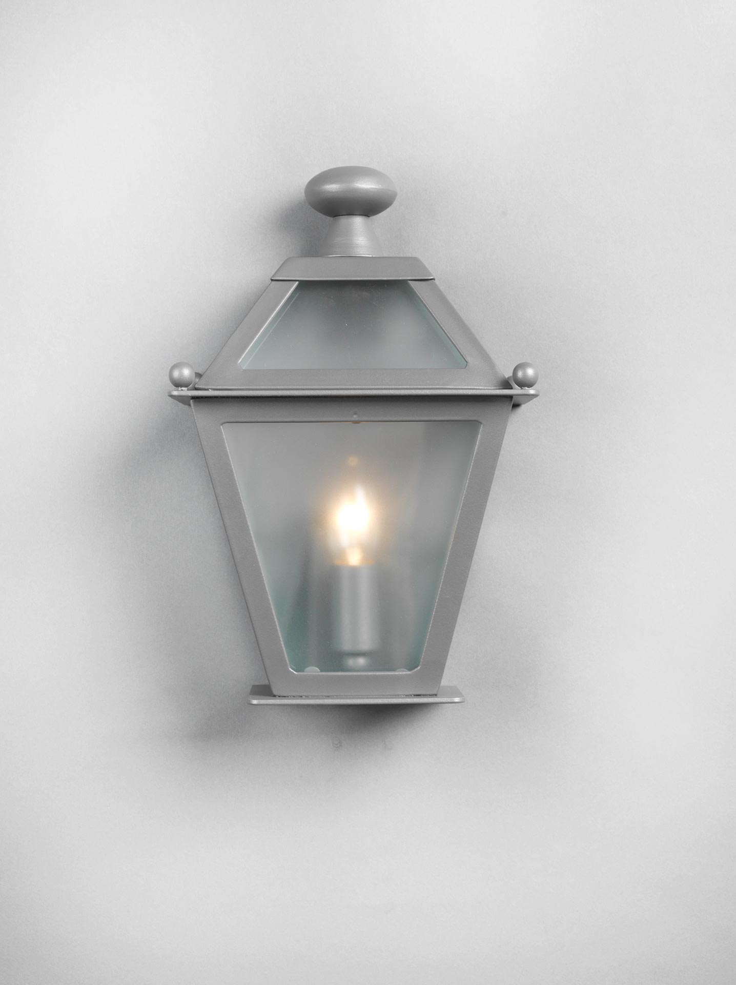Mezza lanterna in ferro con vetri zincato e verniciato a polvere, mod. semplice