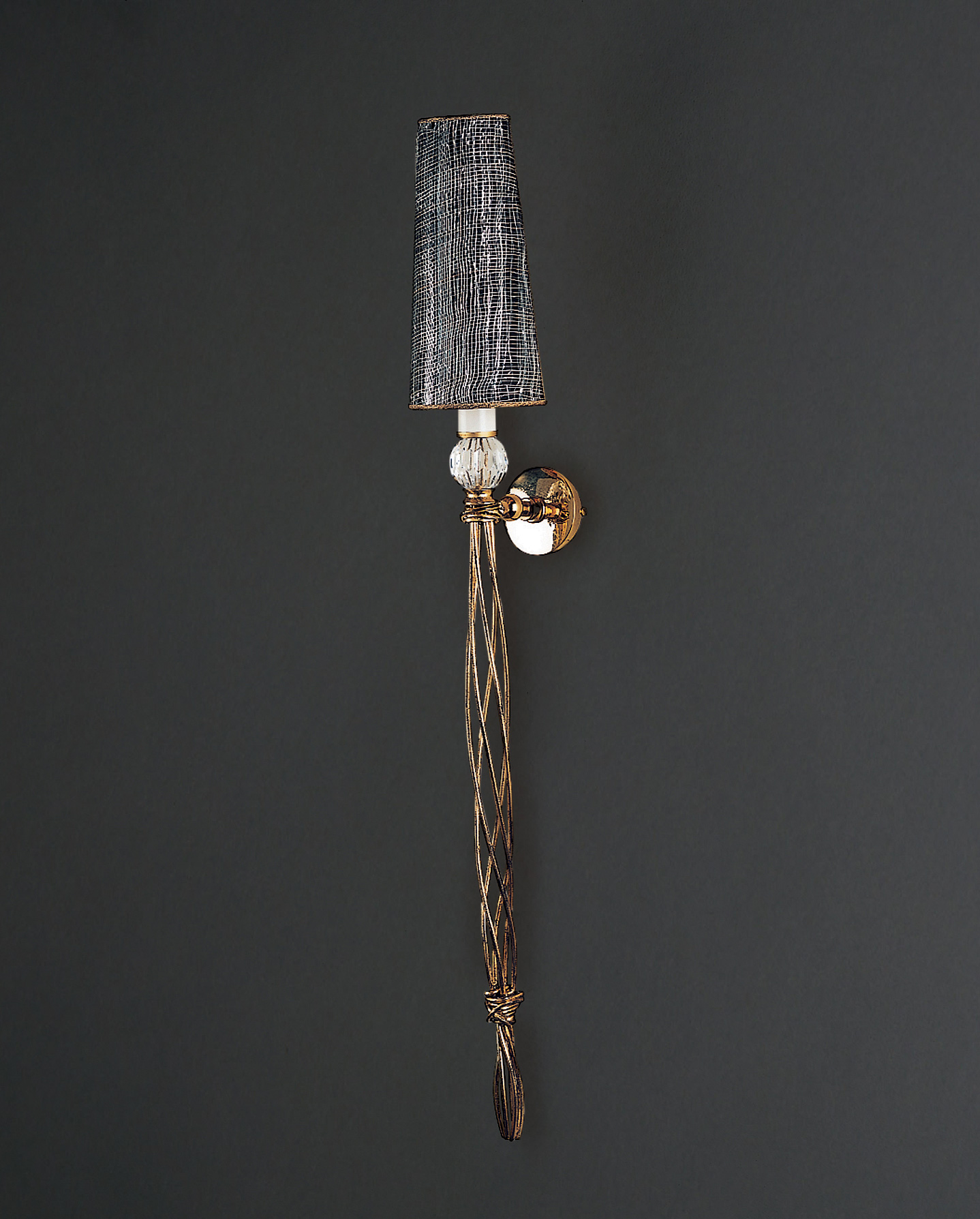 Applique Tortiglione apeerto in ferro con dettagli in cristallo