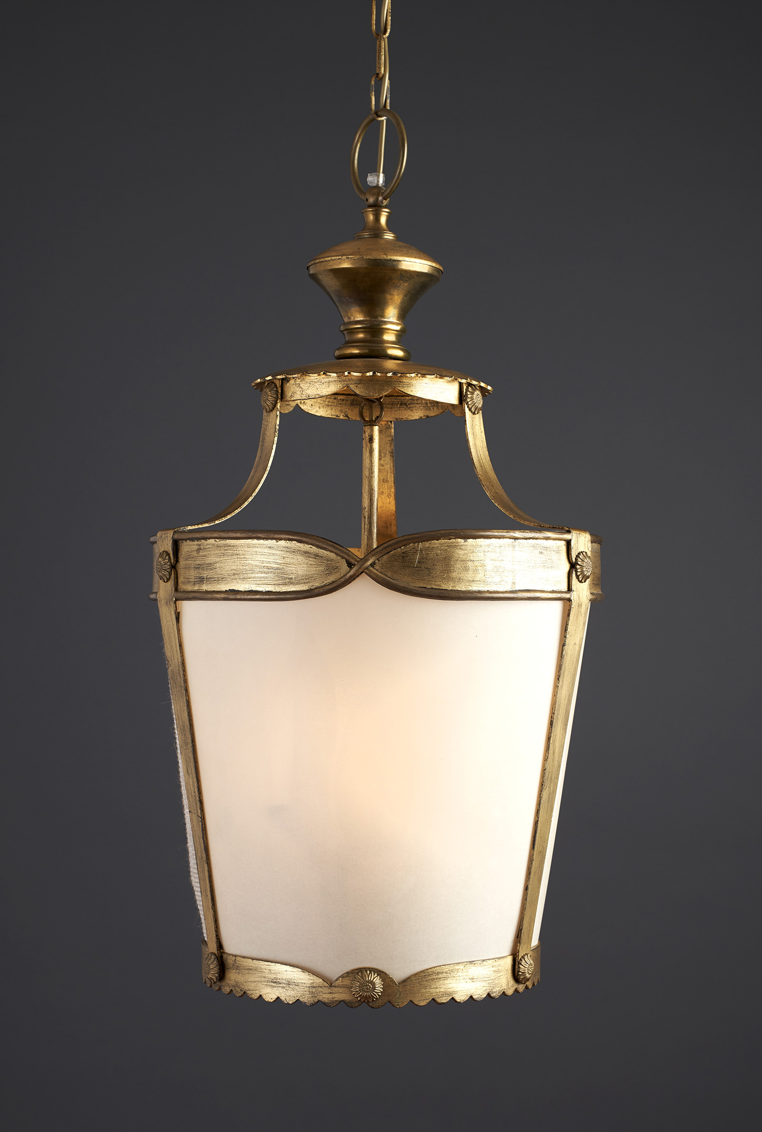 Lanterna a catena in ferro con paralume in rete inox iuta