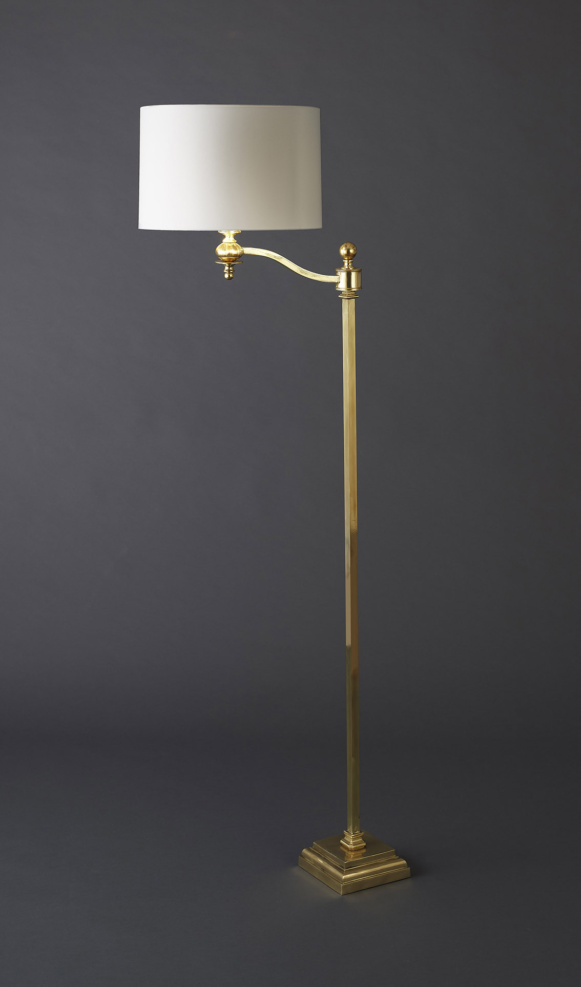 Lampada da terra in ottone con snodo , paralume cilindrico in tessuto 1Lx E27