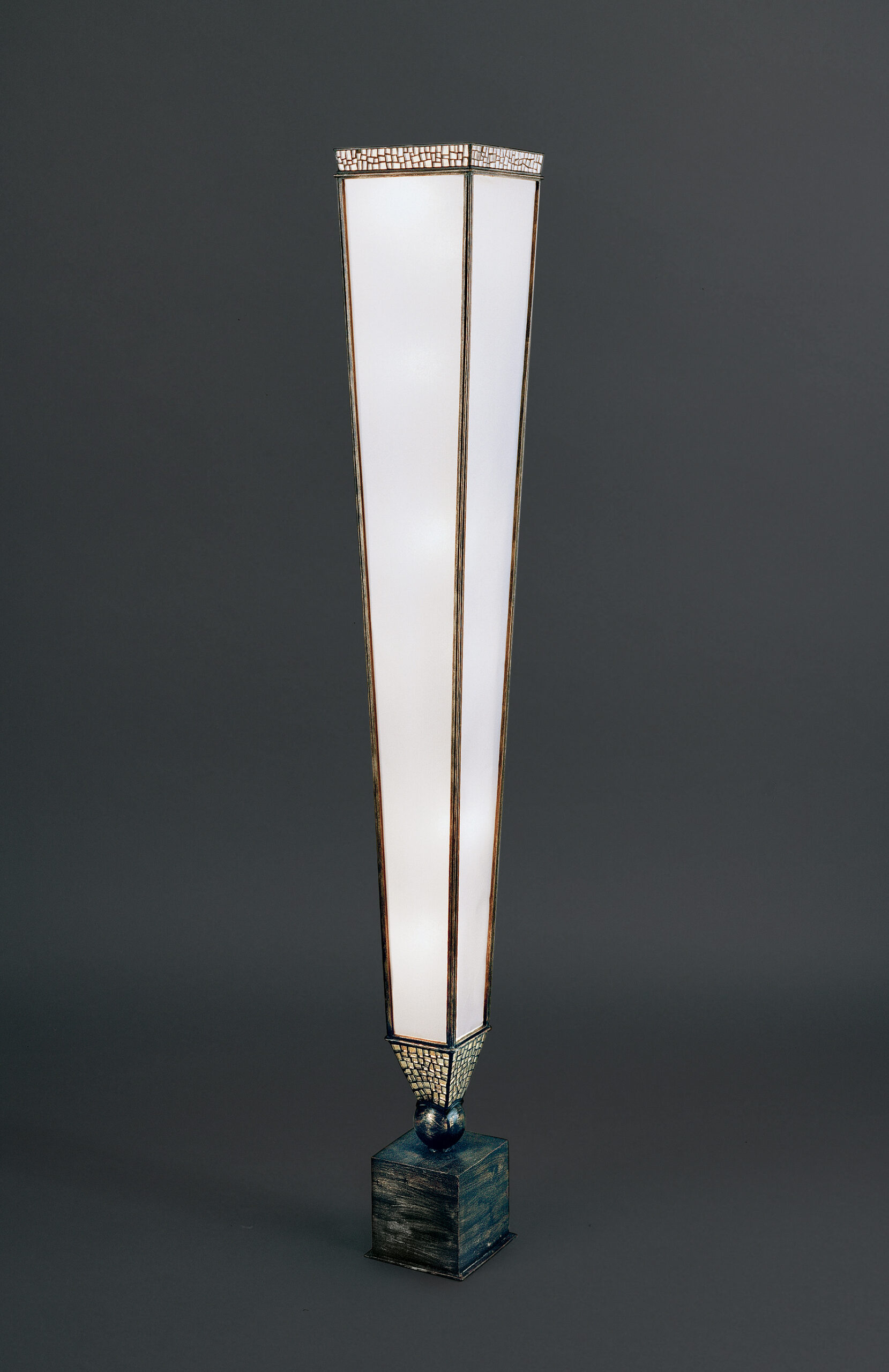 Lampada da terra in ferro con mosaic e paralume in goat chiaro